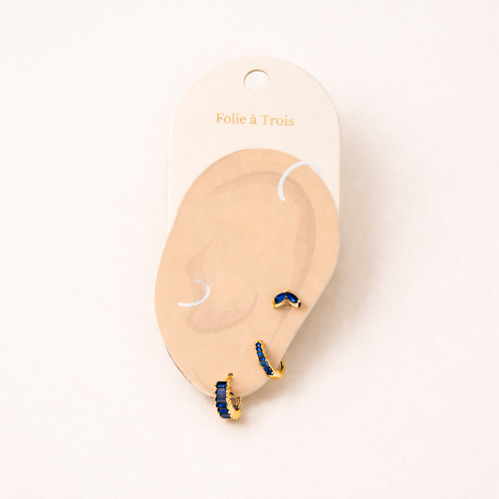 Elevate your jewelry collection with this elegant earring set featuring four distinct styles in gold and silver finishes. Each trio showcases a unique gemstone color—clear, green, and blue—expertly set in stud, small hoop, and statement hoop designs. Crafted with precision and adorned with baguette, round, and marquise-cut stones, these earrings offer versatile sophistication for every occasion. Whether you're dressing up for a night out or adding a touch of sparkle to your everyday look, this curated pack delivers timeless charm and modern flair.
