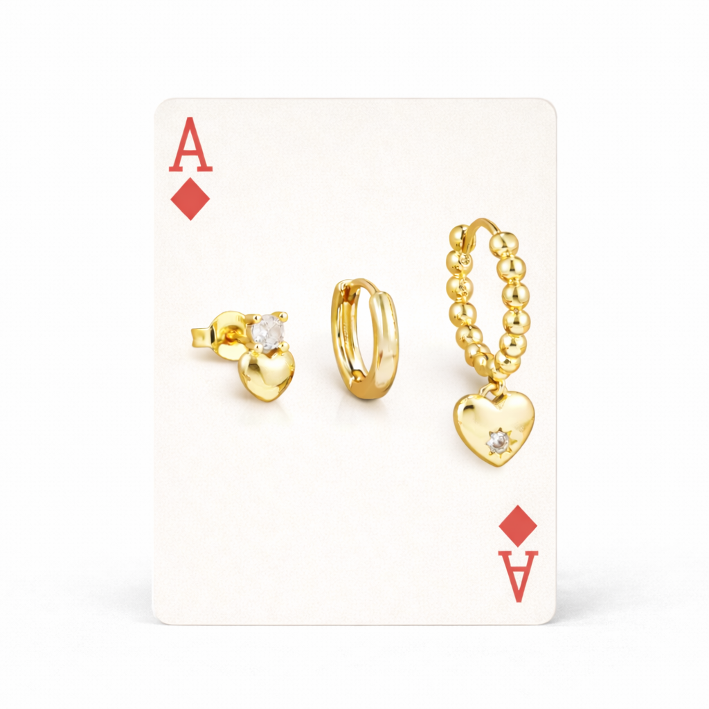 Répandez l'amour avec notre ensemble Fira : un trio de boucles d'oreilles en forme de cœur en acier inoxydable, parfait pour la Saint-Valentin. Chaque paire exprime une émotion différente, de l'audace à la douceur. Fabriqués en acier inoxydable durable, ces cœurs ne ternissent pas et ne se décolorent pas, pour que votre histoire d'amour brille de mille feux. Portez-les ensemble au fil de la semaine ou offrez l'ensemble complet à votre bien-aimé(e). Un style empreint de tendresse.