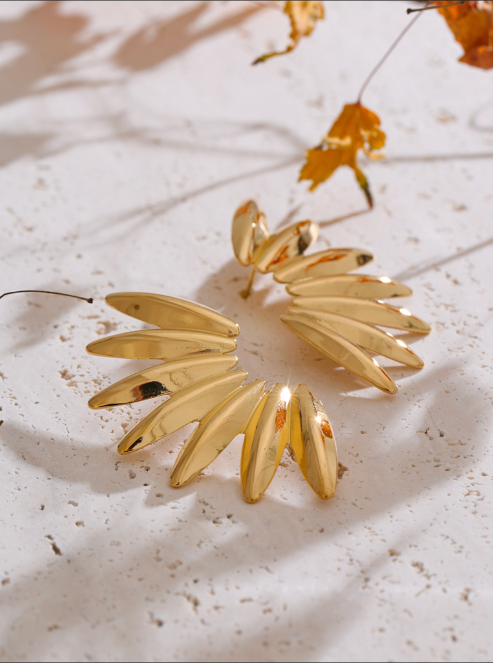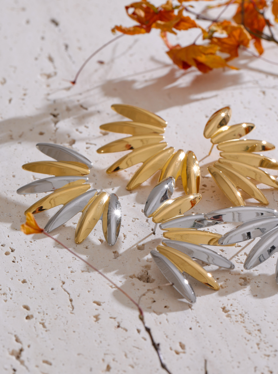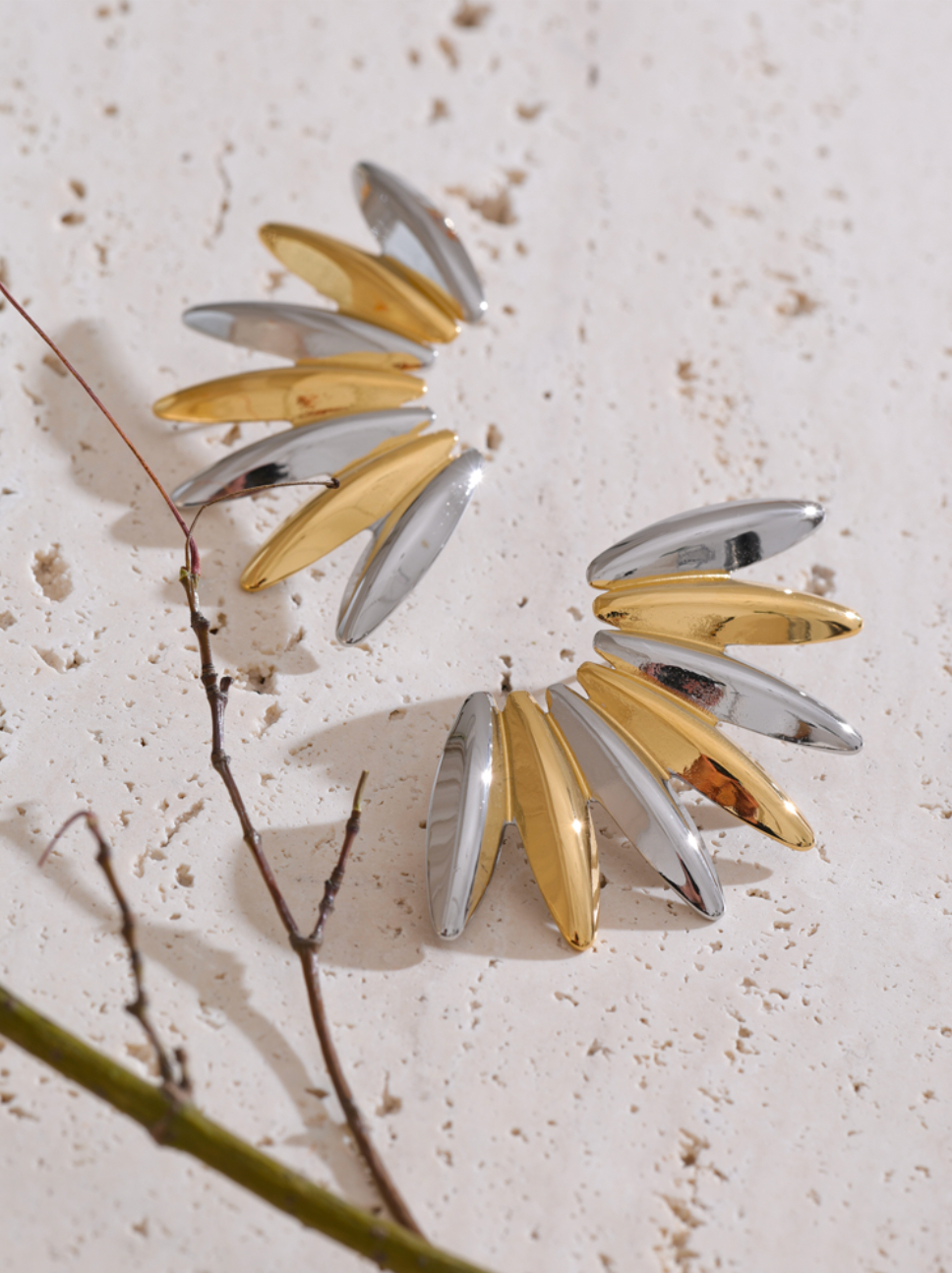 Ajoutez une touche de fantaisie à votre look avec ces boucles d'oreilles clous en acier inoxydable en forme de demi-cercles, confectionnées à partir de délicats pétales de fleurs. Les boucles d'oreilles Kyra apportent un charme ludique à toutes vos tenues, alliant élégance florale et simplicité moderne pour un éclat au quotidien.