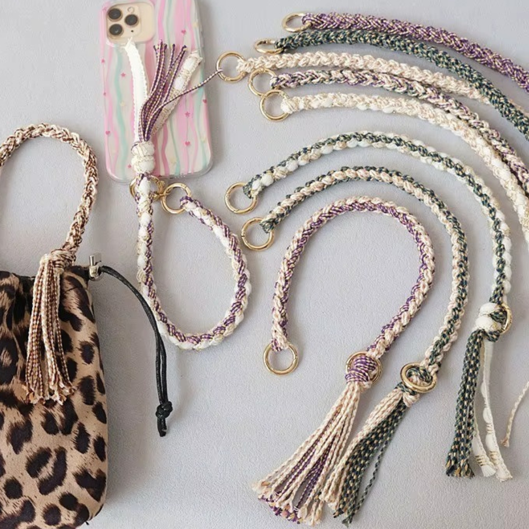 Wrap your phone in style with the Sundaze SHORT PHONE STRAP, featuring a beautifully braided cord that's as functional as it is fabulous. This compact accessory keeps your device within easy reach while adding texture and charm to your everyday carry. Perfect for festival season, spontaneous adventures, or anytime you want hands-free convenience without sacrificing style. Durable, playful, and ready for anything.