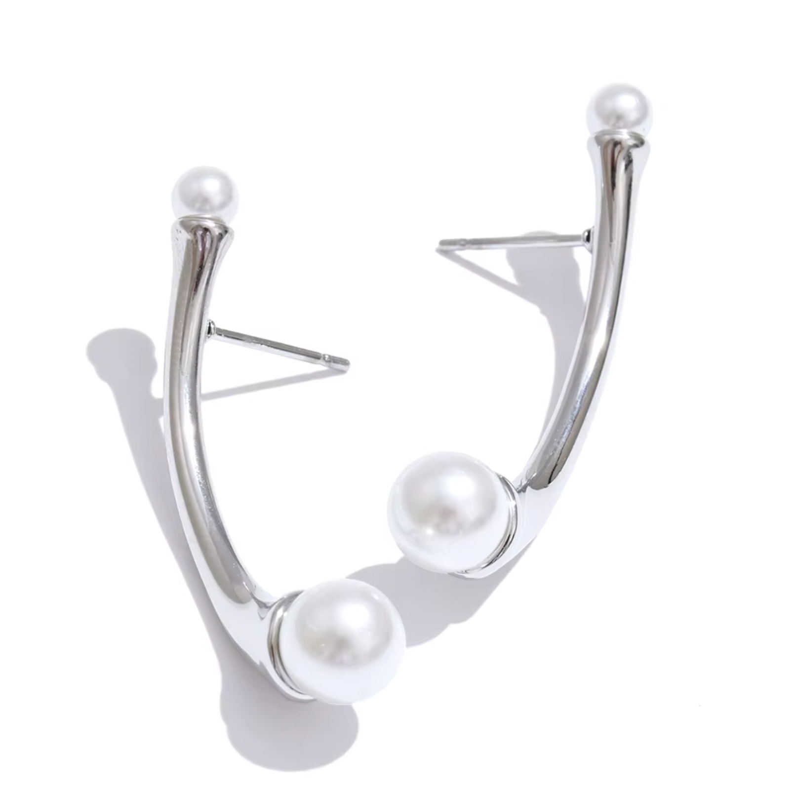 The Vilma Earrings blend edgy stainless steel studs with delicate pearl details for a fresh, playful look. These earrings add a dash of bold elegance, perfect for anyone who loves mixing modern vibes with classic charm.