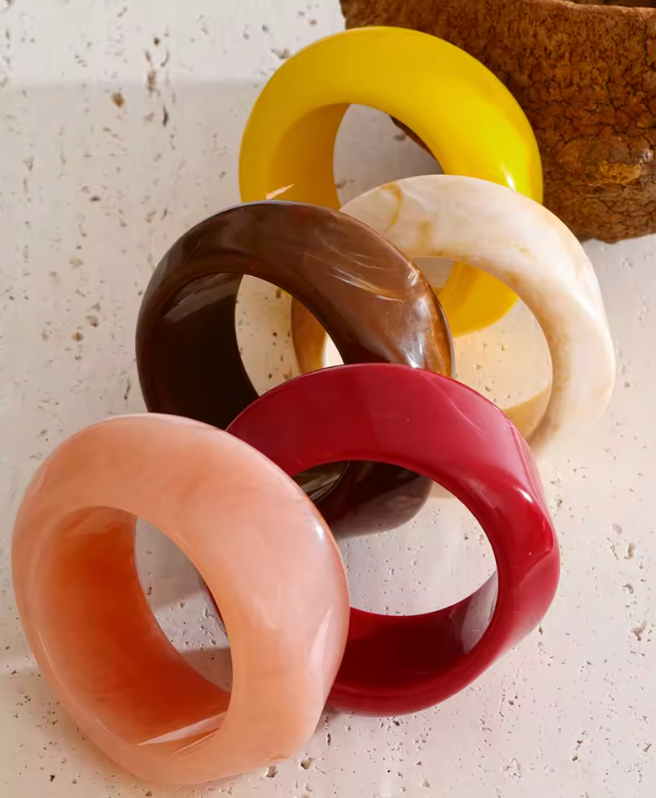 Trek alle aandacht met deze opvallende acryl armband, verkrijgbaar in vier levendige kleuren die bij je stemming passen. Combineer verschillende tinten of draag je favoriet apart – hoe dan ook, je zult dol zijn op de blikvanger die dit sieraad om je pols is. Lichtgewicht en comfortabel om de hele dag te dragen, het gladde acrylontwerp zorgt voor een speelse uitstraling zonder zwaar aan te voelen. Druk jezelf uit met kleur en zelfvertrouwen!