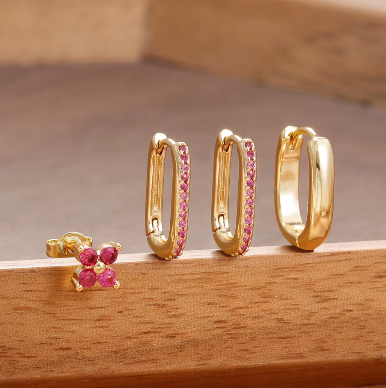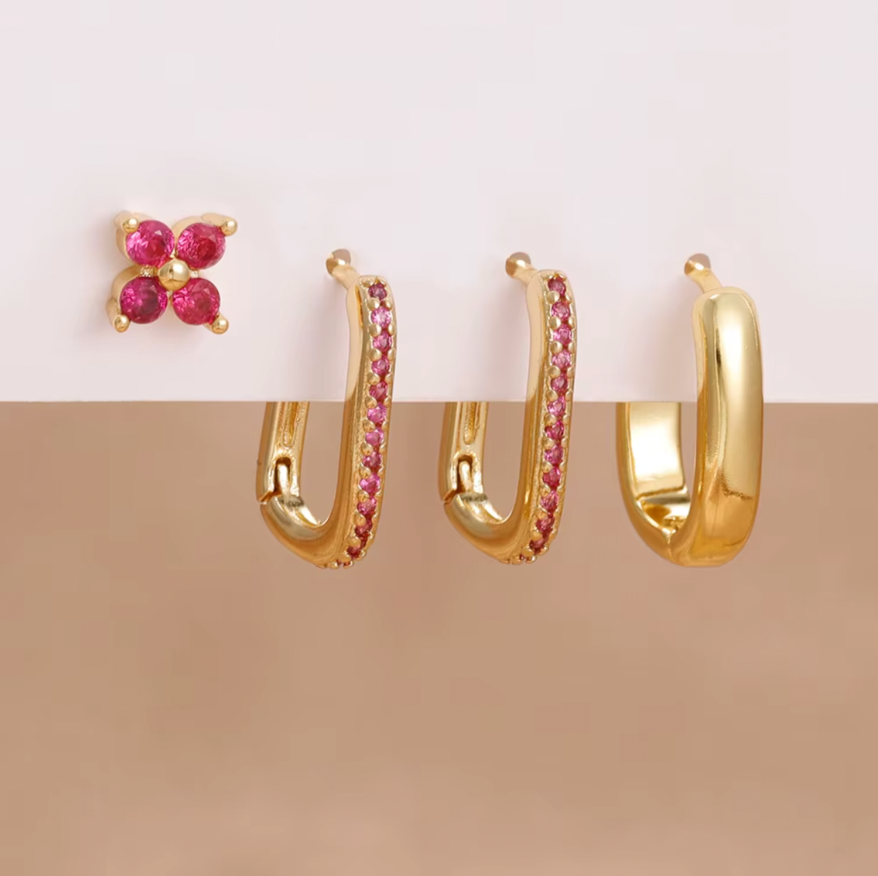 Maak je klaar om te mixen en matchen met de Sophia SET! Deze speelse collectie bevat vier roestvrijstalen oorbellen – drie ringetjes en één oorknopje – verkrijgbaar in verschillende kleuren om je dag én je stijl op te fleuren. Perfect om overal een vleugje persoonlijkheid toe te voegen.