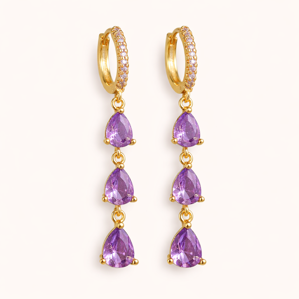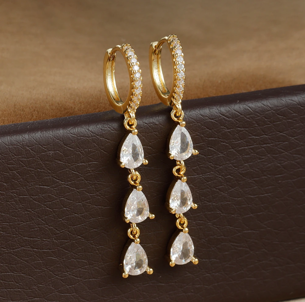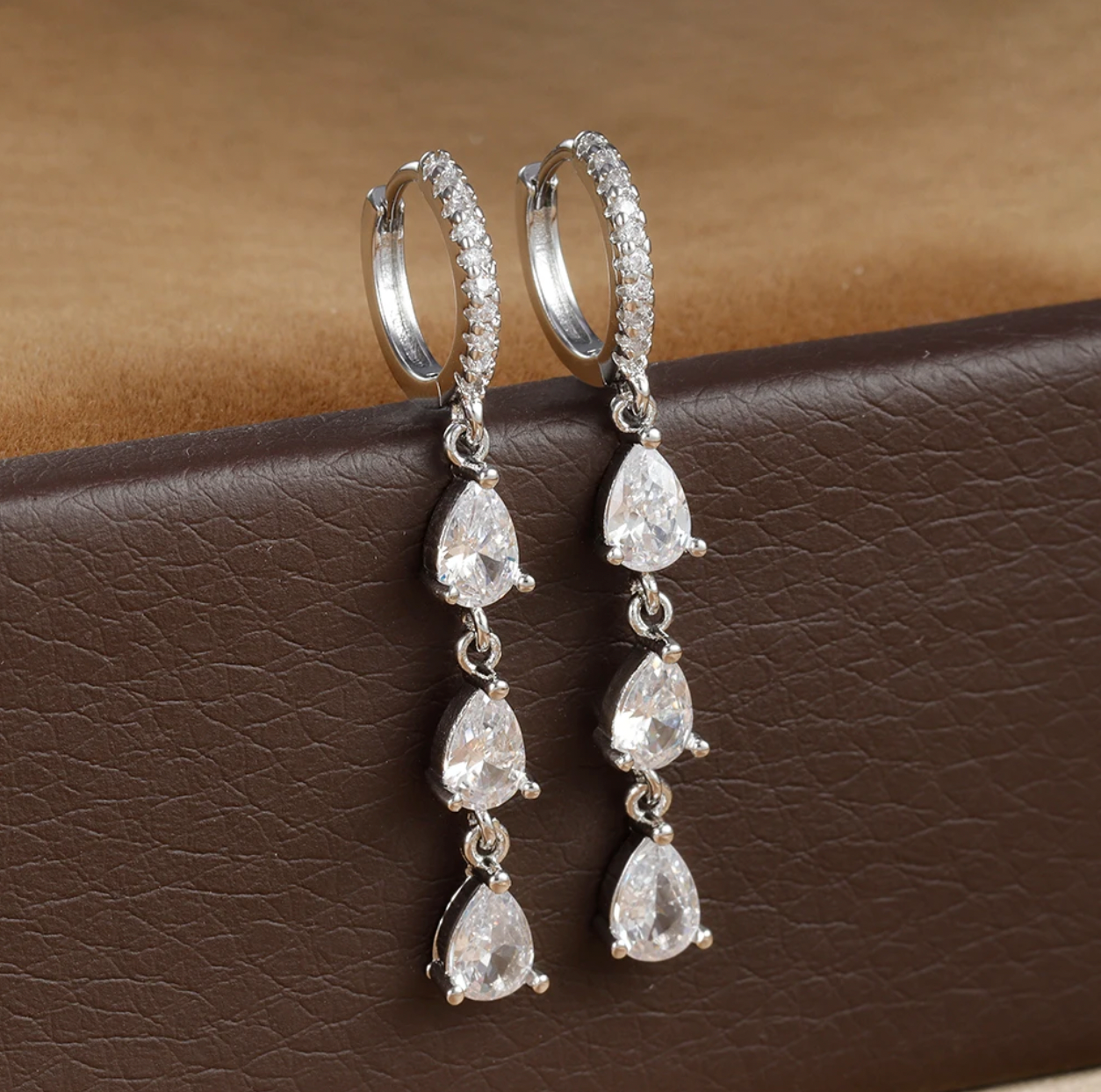 Deze speelse roestvrijstalen ringen zijn voorzien van drie sprankelende zirkoniadruppels die subtiel onder elkaar zijn gestapeld, waardoor een charmant watervaleffect ontstaat. Licht en levendig, voegen ze een vleugje glans en beweging toe aan elke outfit, waardoor je je de hele dag moeiteloos stralend voelt.