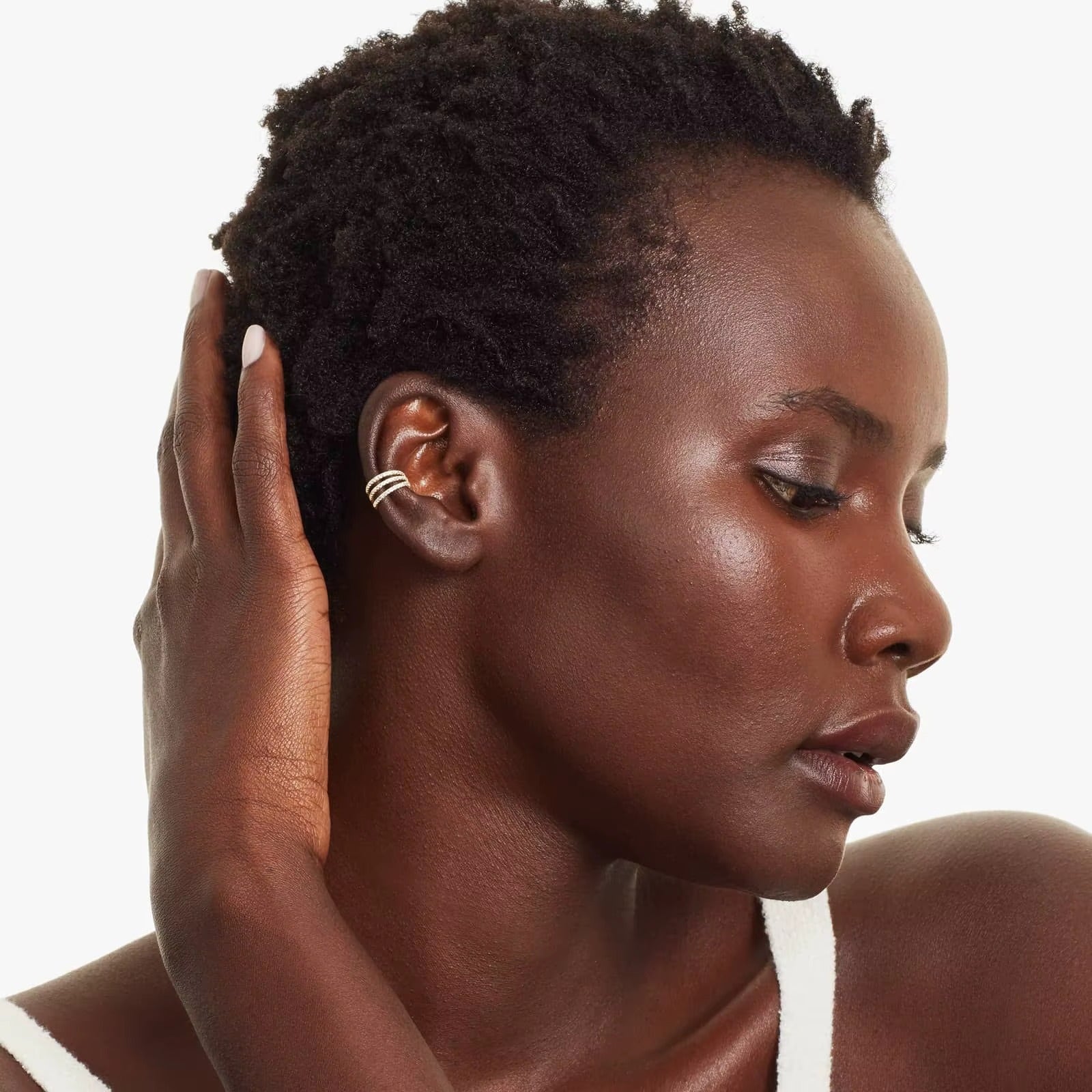 Make a bold statement with this striking ear cuff featuring three cascading rows of brilliant zircons that catch the light from every angle. Perfect for adding instant glamour to any look, this playful piece brings sparkle and edge to your style. Whether you're dressing up for a night out or elevating your everyday aesthetic, the Wildcard ear cuff delivers maximum impact with its dazzling crystal detailing and modern design.