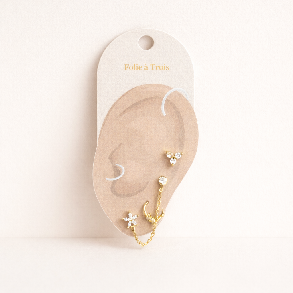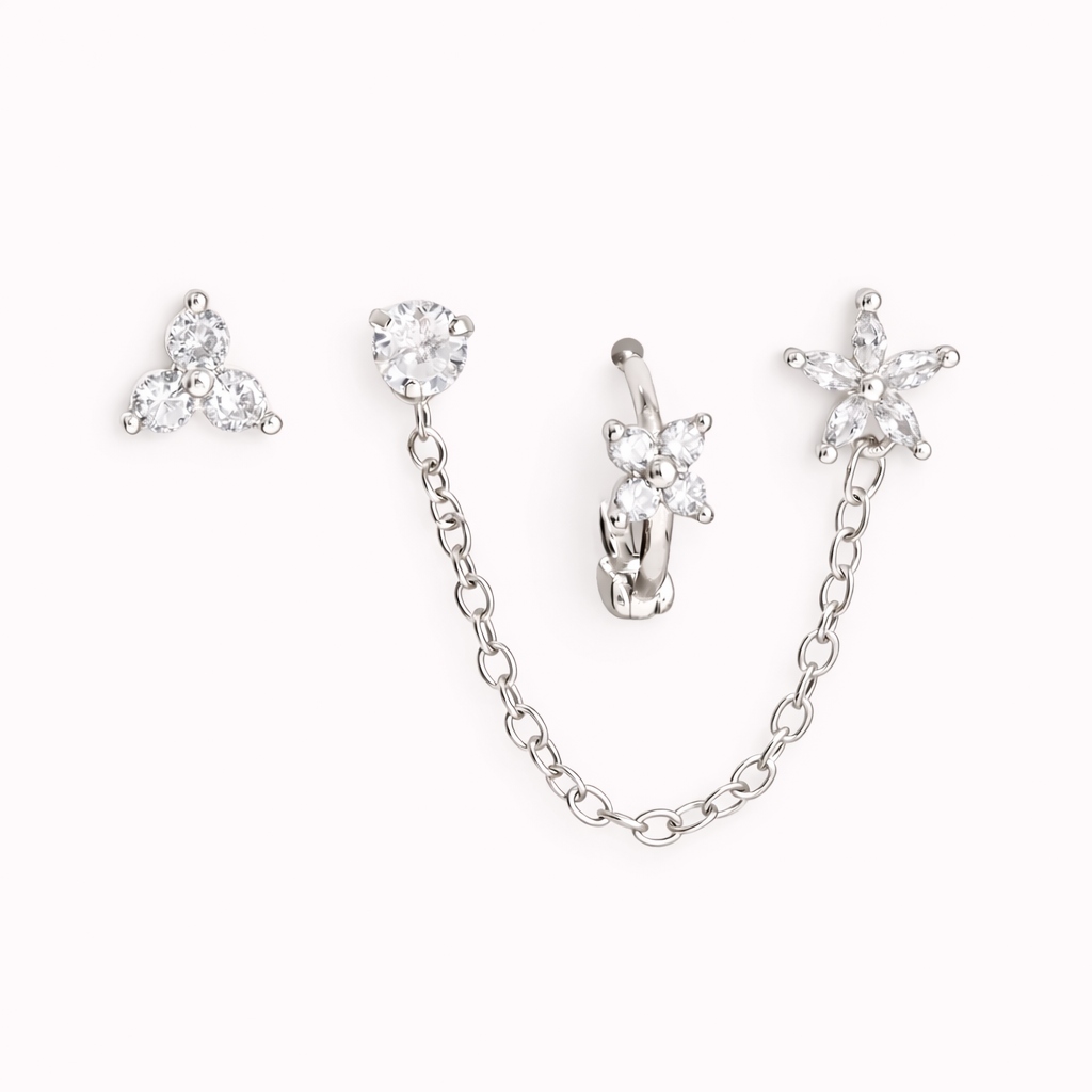 Meet your new ear-styling essential—the Juno SET brings versatility in a four-piece collection. Three sleek stainless steel studs pair perfectly with one elegant hoop, giving you the flexibility to switch up your vibe whenever the mood strikes. Mix them solo or layer them together for maximum impact. Hypoallergenic and ready for any adventure, this set is your ticket to effortless, playful self-expression.