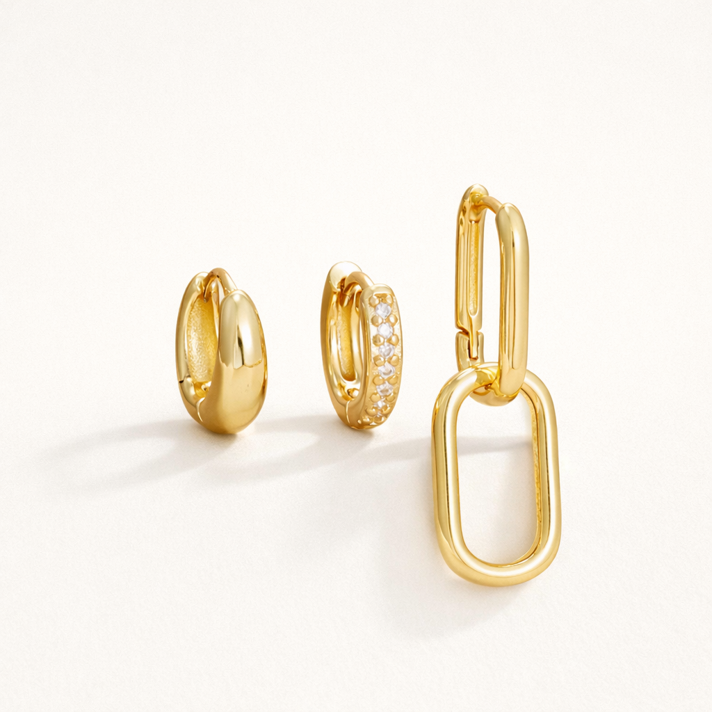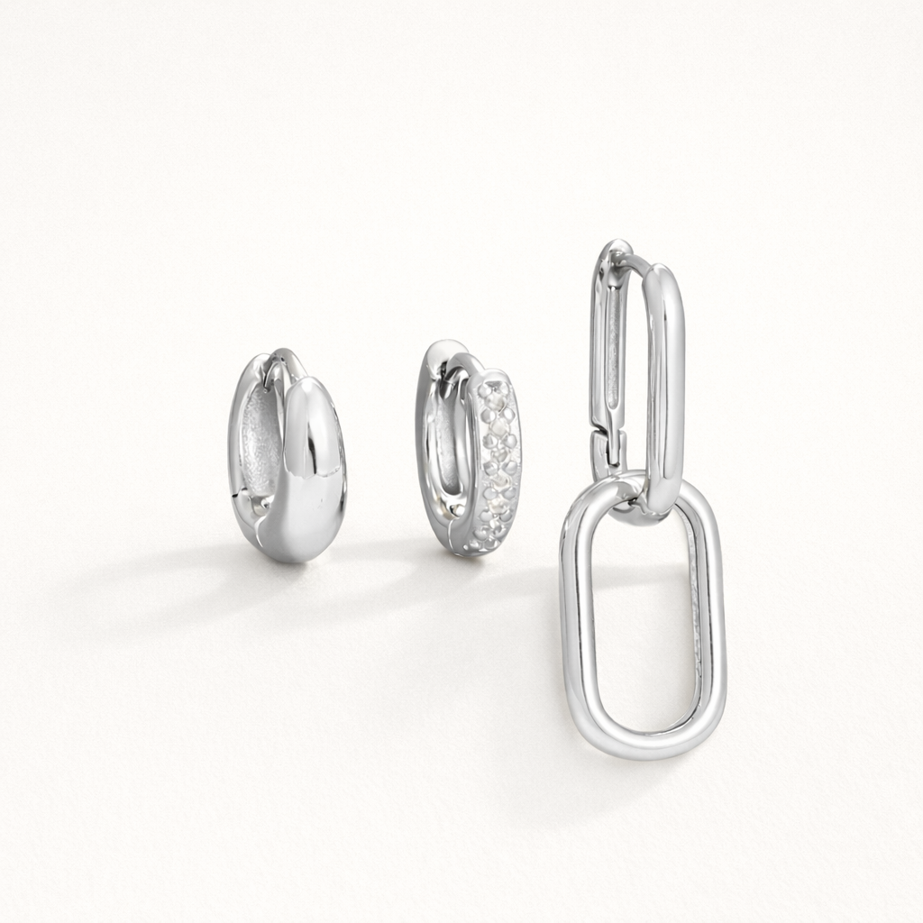 Brighten your day with the Lea SET—a fun trio of stainless steel hoops accented with sparkling white zirconia details. Designed to catch the light and your playful spirit, these earrings add just the right touch of sparkle to any outfit.